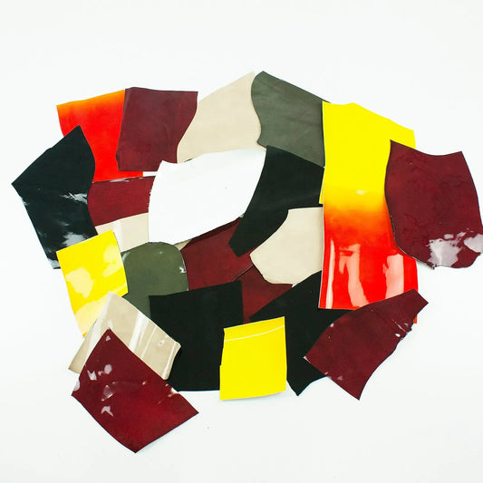 Laminated leather remnant bag in various colors 500 g.