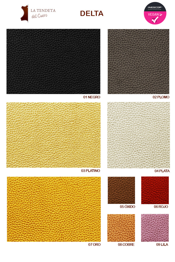 DELTA collection of vegan-synthetic leather, ideal for all types of uses, such as upholstery for furniture, sofas, chairs, cars, etc. Also suitable for decoration, handbags, wallets, purses, and all kinds of accessories.