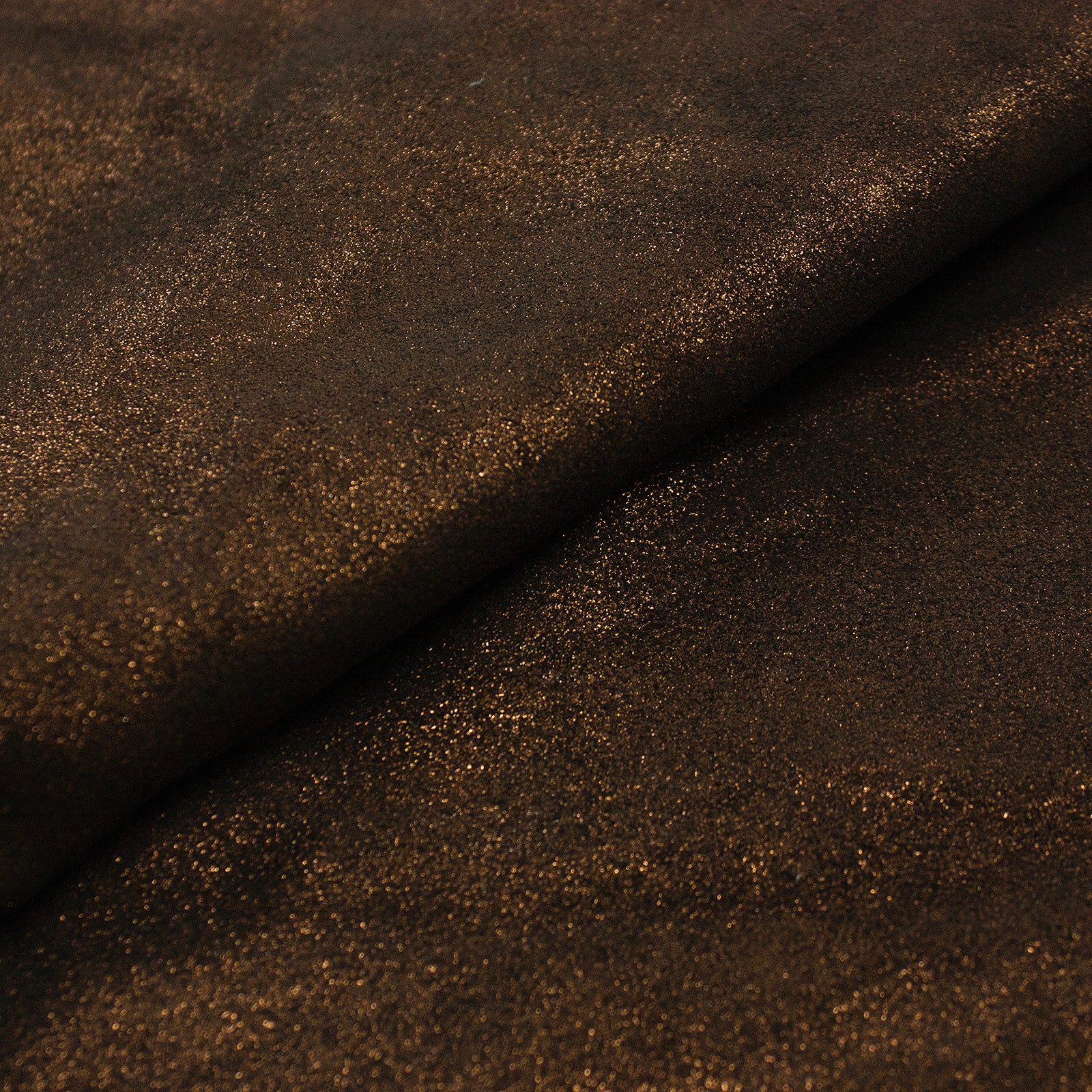 Descripción: Piel de vacuno serraje fantasía purpurina en color bronce de tacto normal y apta para tus trabajos en cuero. Esta pieza presenta algunas arrugas, pero es totalmente apta para su uso.