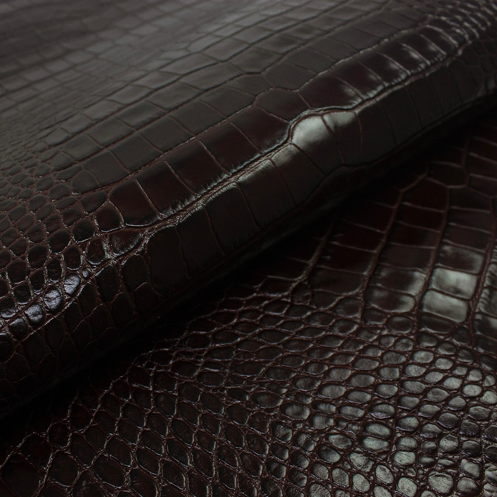 Descripción: Excelente piel de vacuno grabada imitación cocodrilo en color rojo vino de tacto rígido y apta para usar en cualquiera de tus trabajos en cuero. Esta piel está en perfectas condiciones para su uso.
